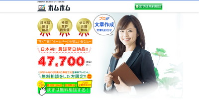 スマートフォン対応、SEO対策もしてくれる『ホームページライトプラン』ですと、税込み43,780円で依頼の受け付けが可能です。