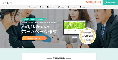 東京都千代田区にあるZIUSは、月額1,100円という格安料金でホームページ制作を行っている会社です。